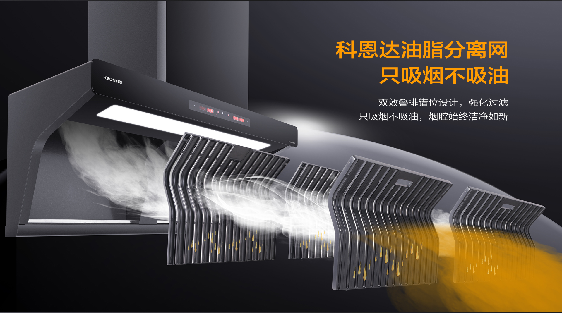 科恩免清洗煙機(jī)是浙江科恩電器有限公司旗下產(chǎn)品,歷時(shí)3年研發(fā),于2023年重磅推出。免清洗煙機(jī)一經(jīng)推出,便受到行業(yè)和市場(chǎng)的熱情追捧。其核心的科恩達(dá)油脂分離網(wǎng)憑借嚴(yán)格苛刻的高溫噴砂特氟龍易潔工藝以及科恩達(dá)油脂分離網(wǎng)U型錯(cuò)層科學(xué)結(jié)構(gòu)設(shè)計(jì),做到油煙可被快速分離,油脂高效冷凝,同時(shí),能更好地起到阻火阻燃的效果!真正做到只吸煙不吸油,徹底告別煙機(jī)內(nèi)部清洗難題,保證煙機(jī)持久大吸力,延長(zhǎng)煙機(jī)使用壽命。