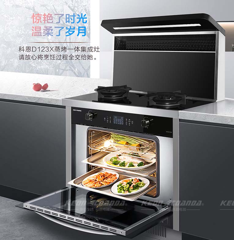 科恩D123X變頻蒸烤消一體智能集成灶為什么頗受消費者的喜愛,原因有以下幾方面:1.省空間:科恩D123X集合煙機(jī)、燃?xì)庠睢⒄粝洹⒖鞠洹⑾竟竦榷喾N功能于一體,不僅節(jié)省空間還能省下一米櫥柜空間。2.吸油煙能力強(qiáng):比起傳統(tǒng)煙機(jī),科恩D123X離灶臺距離更近,吸力更強(qiáng),在油煙產(chǎn)生的第一時間就可以將其吸走,另外油煙的過濾網(wǎng)采用不沾油特氟龍材料,易清洗、耐高溫、抗腐蝕!3.大火力爆炒:尤其是爆炒菜,D123X鑄鐵鍋架帶雙聚能環(huán)設(shè)計,四通道獨立引射5.0KW大火力猛火爆炒,寬裕立體上進(jìn)風(fēng)充分燃燒,提高燃燒效率,降低一氧化碳排放。