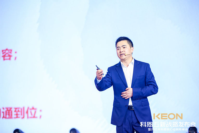 這一切成功的背后,除了有一支優(yōu)秀的鐵血團(tuán)隊(duì),還有各地經(jīng)銷商家人的支持陪伴,更重要的是有一位領(lǐng)航人不斷地探索。科恩電器董事長(zhǎng)俞鋒上臺(tái)致辭,宣布峰會(huì)正式開始,“打造新科恩、重塑新科恩,再創(chuàng)科恩黃金十年”這一堅(jiān)定目標(biāo)和信念,伴隨洪亮的嗓音響徹全場(chǎng)。