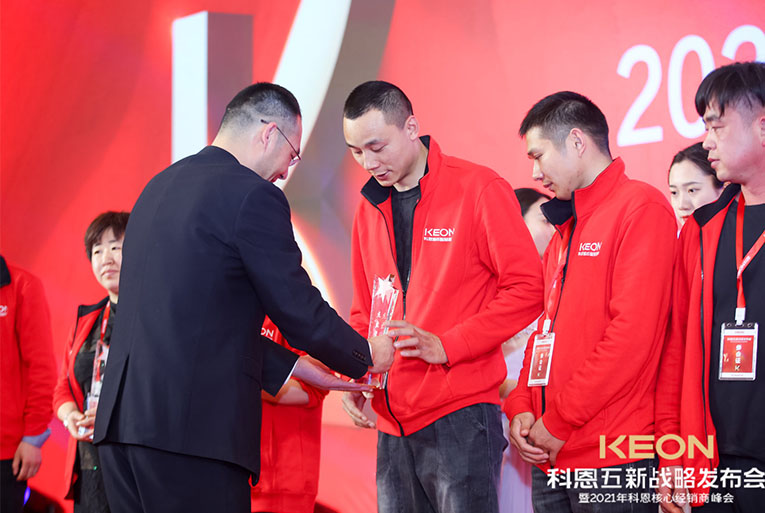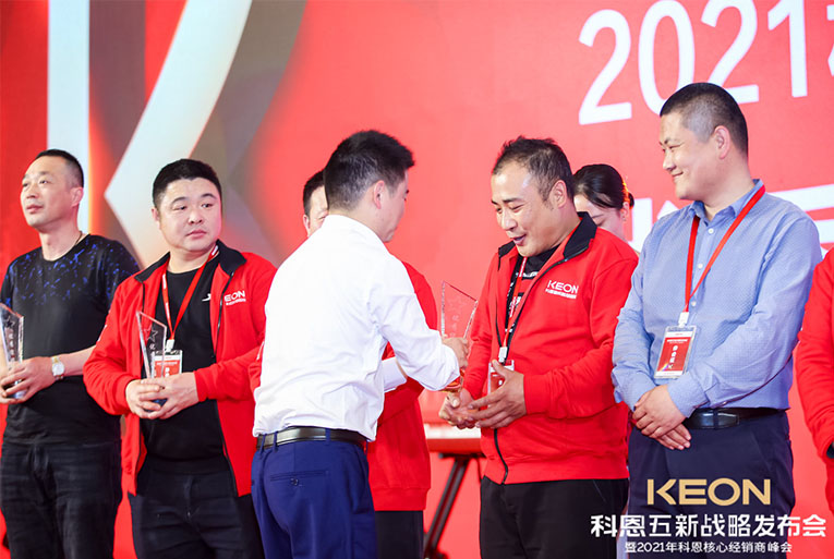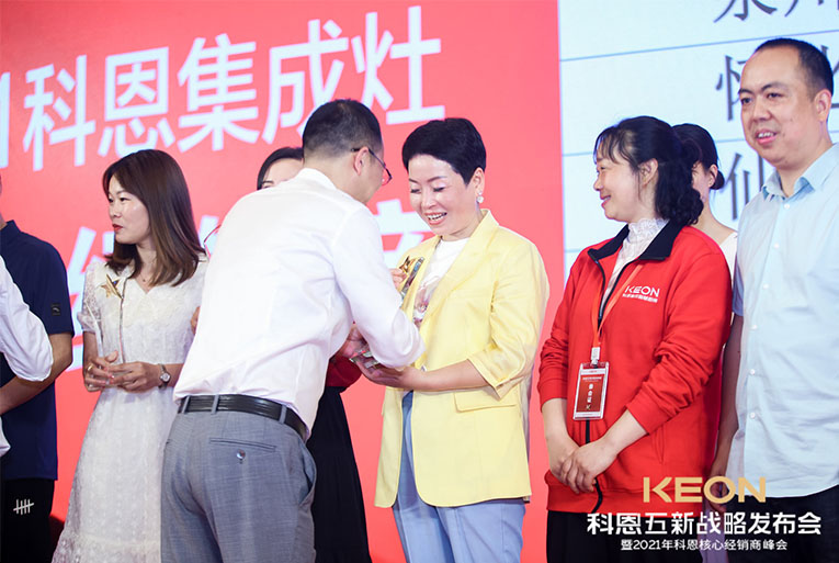 科恩電器一路披荊斬棘,成功實(shí)現(xiàn)了一輪又一輪銷量的突破,這一切的成果都離不開終端經(jīng)銷商的努力與付出。晚宴現(xiàn)場(chǎng)對(duì)科恩電器優(yōu)秀經(jīng)銷商進(jìn)行了表彰獎(jiǎng)勵(lì),頒發(fā)了2020年度科恩電器優(yōu)秀專賣店、2020年度科恩電器優(yōu)秀經(jīng)銷商、2020年度科恩電器杰出經(jīng)銷商、2020年度科恩電器卓越經(jīng)銷商、2020年度科恩電器功勛經(jīng)銷商等在內(nèi)的多項(xiàng)大獎(jiǎng),公司高管上臺(tái)授予榮譽(yù)。