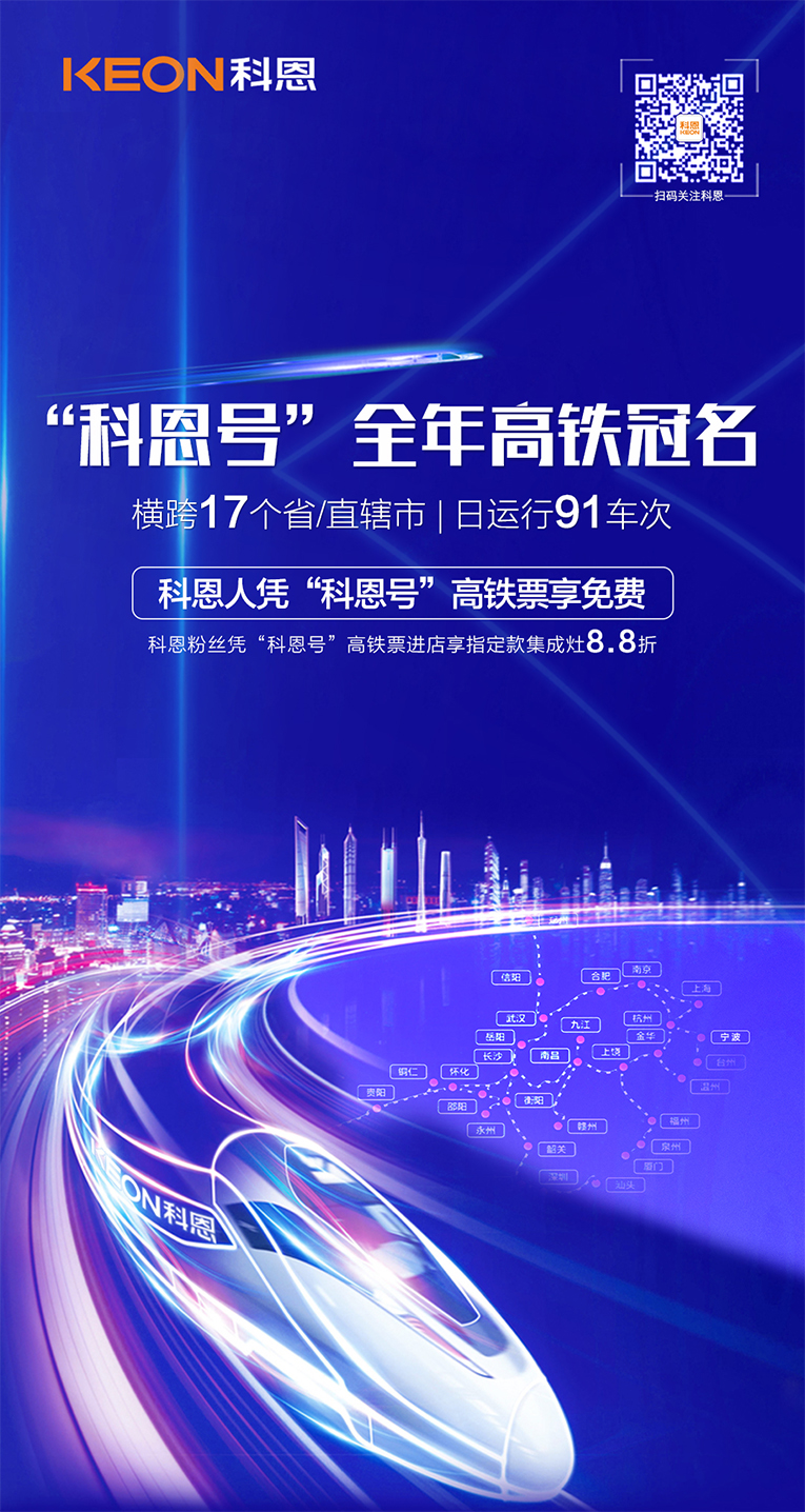 一列列品牌冠名高鐵縱橫馳騁,匯集了來自全國(guó)各地人群,產(chǎn)生著強(qiáng)大的品牌引領(lǐng)效應(yīng)。集成灶十大品牌、廚電行業(yè)十大品牌“科恩號(hào)”高鐵專列正式運(yùn)行,橫跨17個(gè)省/直轄市,日運(yùn)行91車次!科恩集成灶啟動(dòng)全年高鐵冠名,通過中國(guó)高鐵完善的平臺(tái)搭建,實(shí)現(xiàn)渠道共享,與品牌進(jìn)行無縫嫁接,成功開啟輻射全國(guó)的品牌戰(zhàn)略布局,將品牌觸角延伸至高鐵,借助高鐵國(guó)家名片屬性為品牌權(quán)威背書,傳遞至大江南北,讓“集成灶就選科恩大吸力”口號(hào),借助高鐵速度、廣度以及深度,更精準(zhǔn)地推向全國(guó)市場(chǎng)!