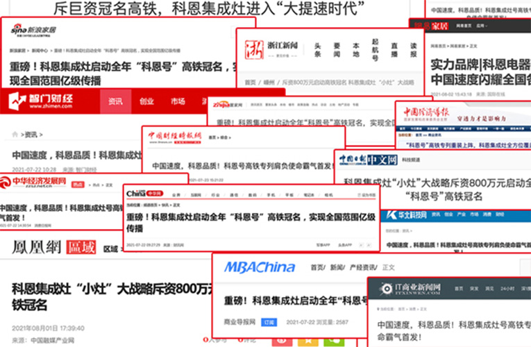 此番科恩集成灶斥資800萬投放高鐵列車,整合全網(wǎng)主流媒體進(jìn)行針對性內(nèi)容營銷,以創(chuàng)意廣告和推廣內(nèi)容,360°全方位品牌曝光,進(jìn)一步樹立品牌形象,擴(kuò)大品牌影響力。
