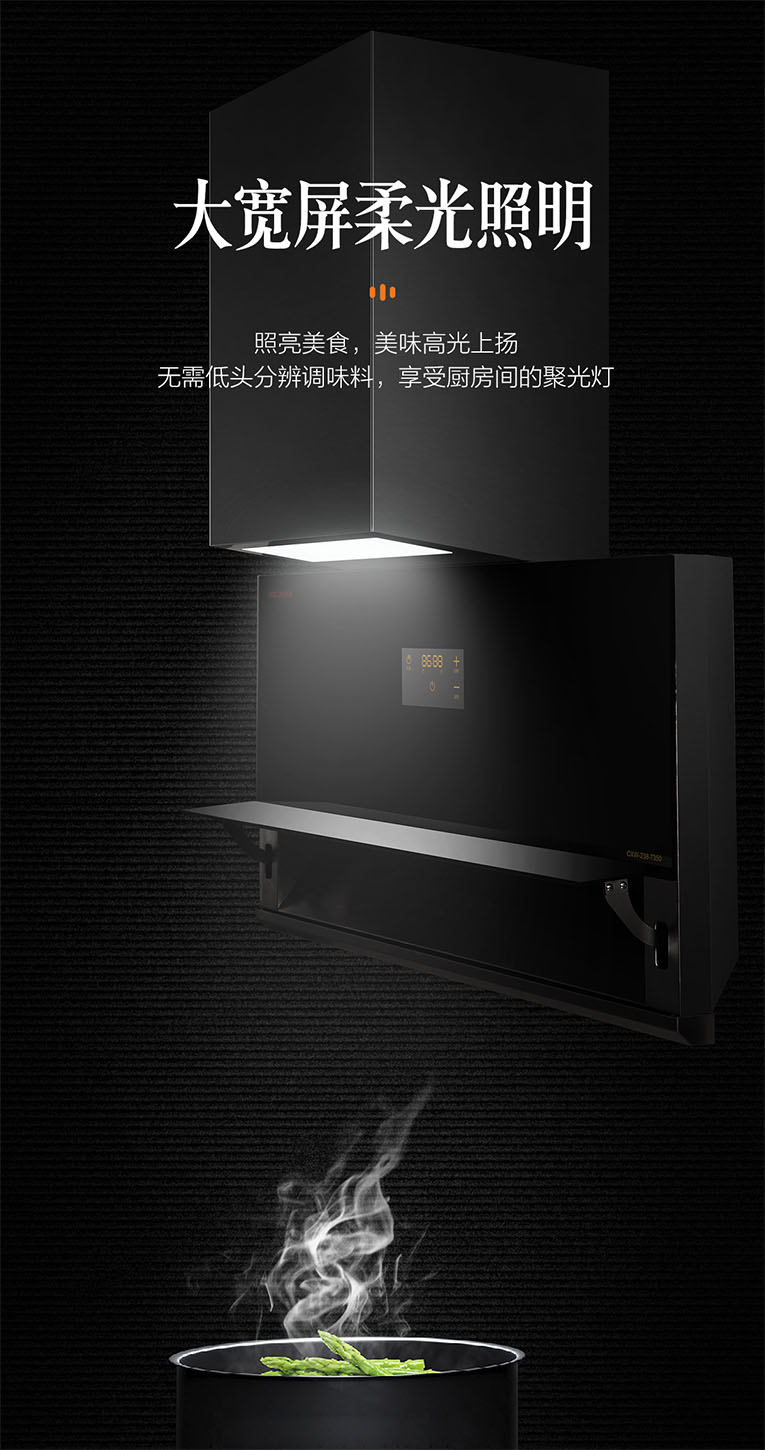 7350煙機雖然機身薄,但吸力強大,變頻電機八檔風(fēng)速調(diào)節(jié),中式八大菜系輕松搞定,一級能效標準,爆炒時刻可實現(xiàn)19.5±10m3/min超大風(fēng)量,最大靜壓可達800Pa,在油煙未上臉之前,就被吸得一干二凈。