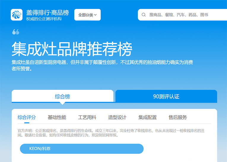 集成灶十大品牌、廚電行業(yè)十大品牌科恩集成灶憑借強大的品牌實力、優(yōu)質(zhì)的產(chǎn)品性能、領(lǐng)先色制造工藝在眾多的品牌中脫穎而出,榮登蓋得排行-集成灶品牌推薦榜,用實力印證了科恩品牌生而不凡。