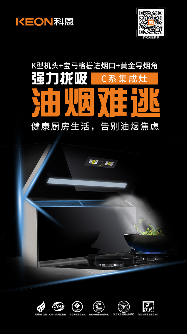 在烹飪環(huán)節(jié),側(cè)吸下排不跑煙是集成灶的必備基本功深受大眾喜愛,科恩C260在此基礎上突破常規(guī),創(chuàng)造性的采用以KEON首字母K為標識的機頭設計,其俯沖式角度、搭配寶馬格柵進煙口,在深腔的加持下,攏吸效果更為出色,三者相輔相成,形成黃金控煙區(qū),同步搭配瞬吸大吸力,把油煙扼殺在萌芽狀態(tài),油煙不過臉,無懼猛火爆炒挑戰(zhàn),縱享無煙廚房!