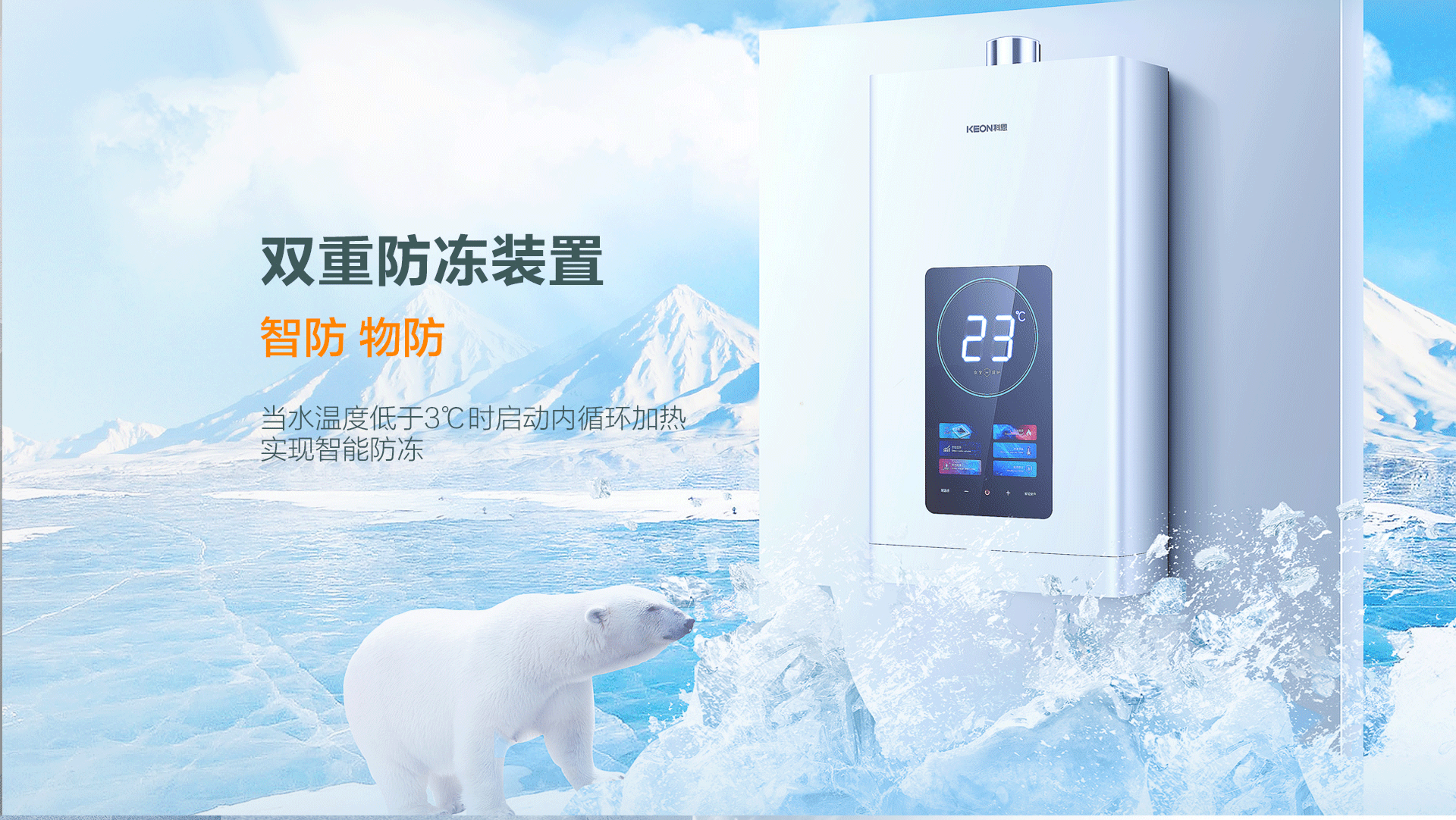 防風抗凍,安心沐浴:雙重防凍功能,防風抗凍,無懼大風和寒冷天氣,當水溫度低于3℃時啟動內循環加熱,輕松實現智能防凍,再無后顧之憂。