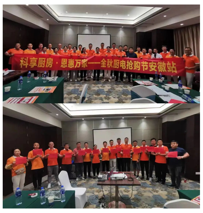 實操演練和簽訂軍令狀環節使得本次啟動大會的氣氛達到最高潮,至此,科享廚房·恩惠萬家——金秋廚電搶購節安徽站大促活動的號角正式打響!大家斗志昂揚,信心滿滿,相信依靠科恩總部的戰略指導,營銷精英的培訓督導以及全體科恩人的不懈努力下,本次大促活動必將火爆全城!