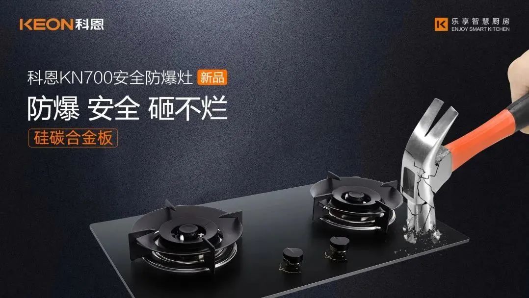 燃氣灶爆炸事故頻頻發(fā)生,究其根本就是因為防爆不過關(guān)。玻璃鋼化一般標準在700度(鋼化溫度)以上,也就是說拿1.8公斤重的重物高度下自由落體,這個玻璃不能碎裂,這才算是合格的鋼化玻璃。但即使達到國家標準的鋼化玻璃面板也存在3‰的自爆率??贫鹘饎偡辣畹恼Q生正是為了解決這個難題。科恩采用了超細晶、高均質(zhì)新型硅碳合金板!更堅可不摧 ,可耐高溫1500℃!真正做到防爆、安全、砸不爛!無懼各種極限考驗!