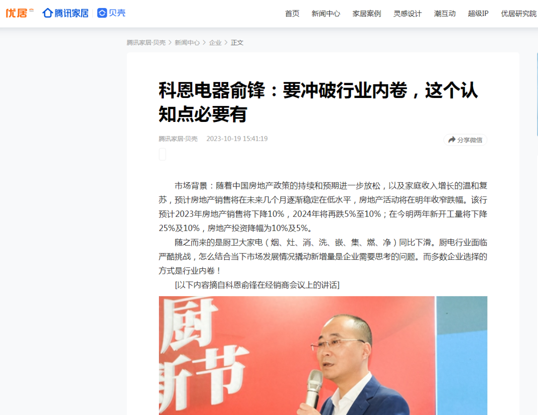 市場(chǎng)內(nèi)卷有兩個(gè)比較明顯的標(biāo)記,一個(gè)標(biāo)記就是價(jià)格被不斷揭穿底線;另外一個(gè)標(biāo)記就是增量客戶不斷消失,大家都開始去做存量市場(chǎng)。這兩個(gè)標(biāo)記在廚電行業(yè)已經(jīng)很明顯。