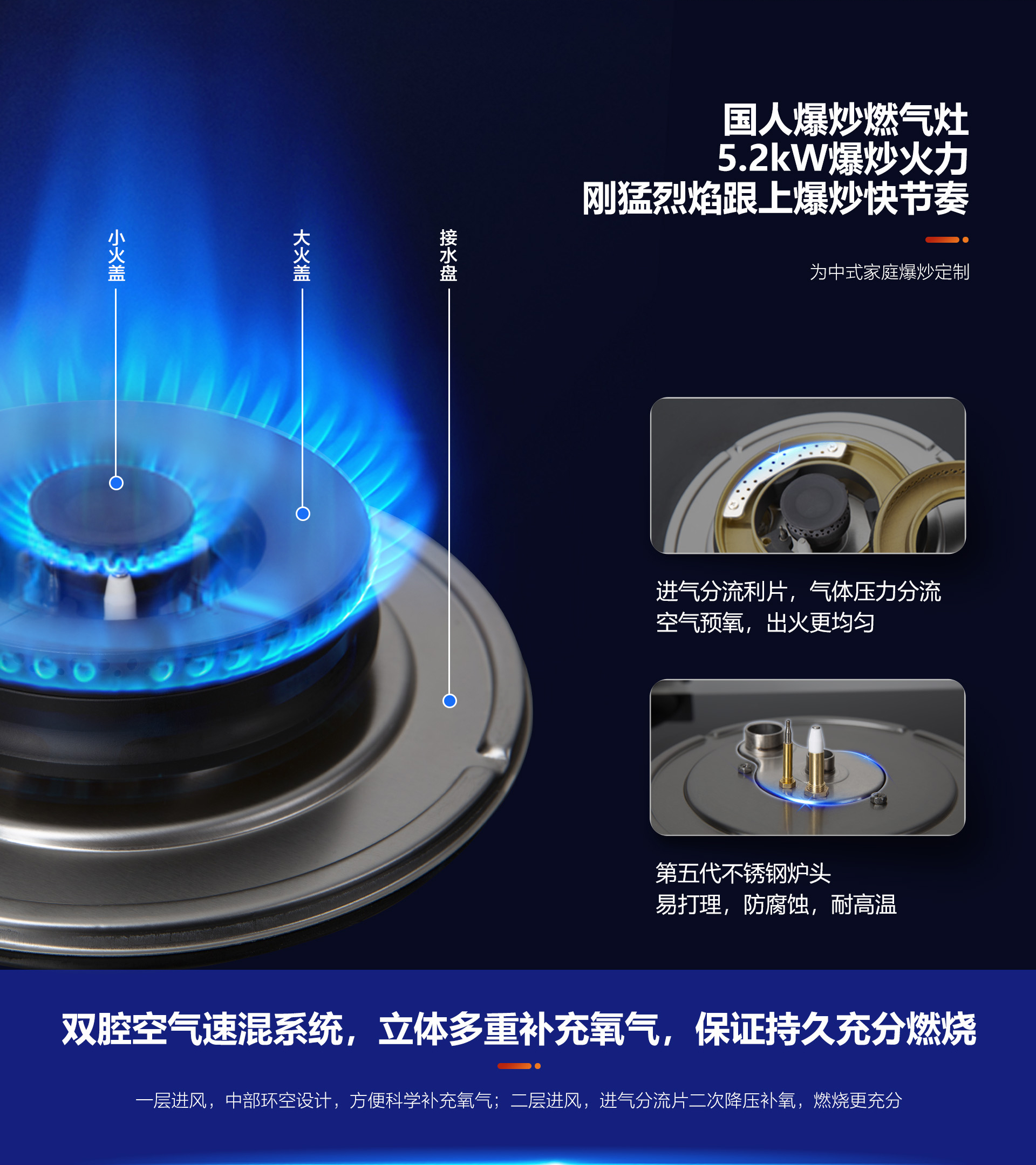 在火力上,科恩金剛防爆灶可達(dá)5.2KW,更適宜中國廚房,爆炒、油炸輕松搞定。且配置一級能效,省氣更環(huán)保!