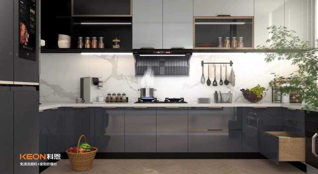 科恩6530免清洗煙機(jī)搭配KN700金剛防爆灶,開放式廚房zui佳搭檔。