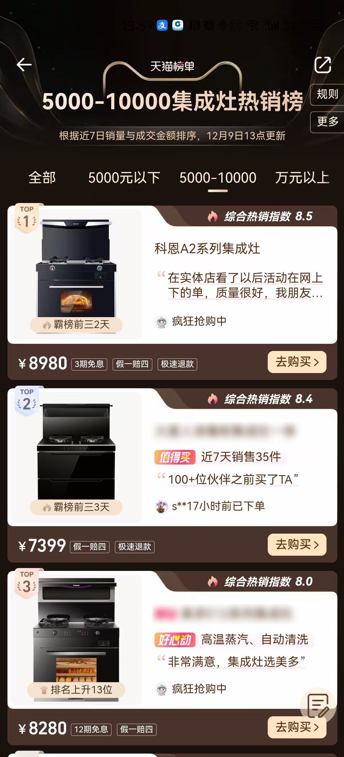 而今第二波國補來襲,浙江科恩電器有限公司傾力支持國家“兩新”政策,開啟線上以舊換新活動,并取得了不凡的成績。科恩A2系列集成灶更是連續取得集成灶熱銷榜TOP1!