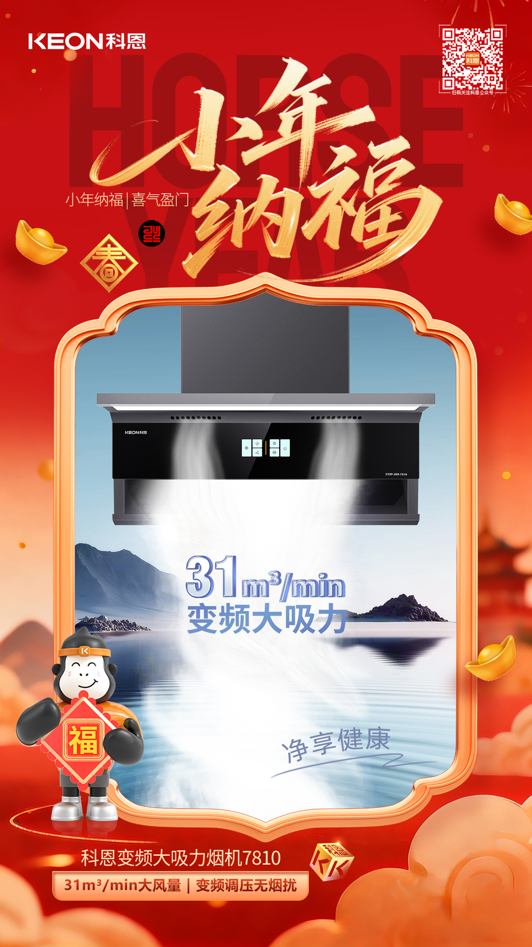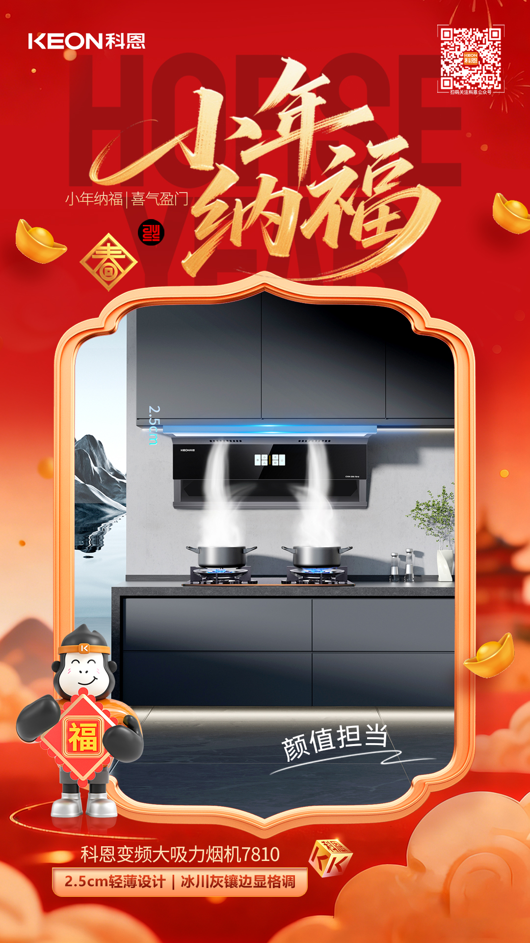 小年祭灶祈安康,科恩7810煙機(jī)以凈煙實(shí)力守護(hù)團(tuán)圓之美。它讓廚房告別油煙困擾,以顏值點(diǎn)亮家居,用智能簡化操作,用健康貫穿始終。這個(gè)小年,讓科恩煙機(jī)陪伴你洗凈舊塵、烹煮佳肴,在清新潔凈的廚房中,迎接福氣滿盈的新春。