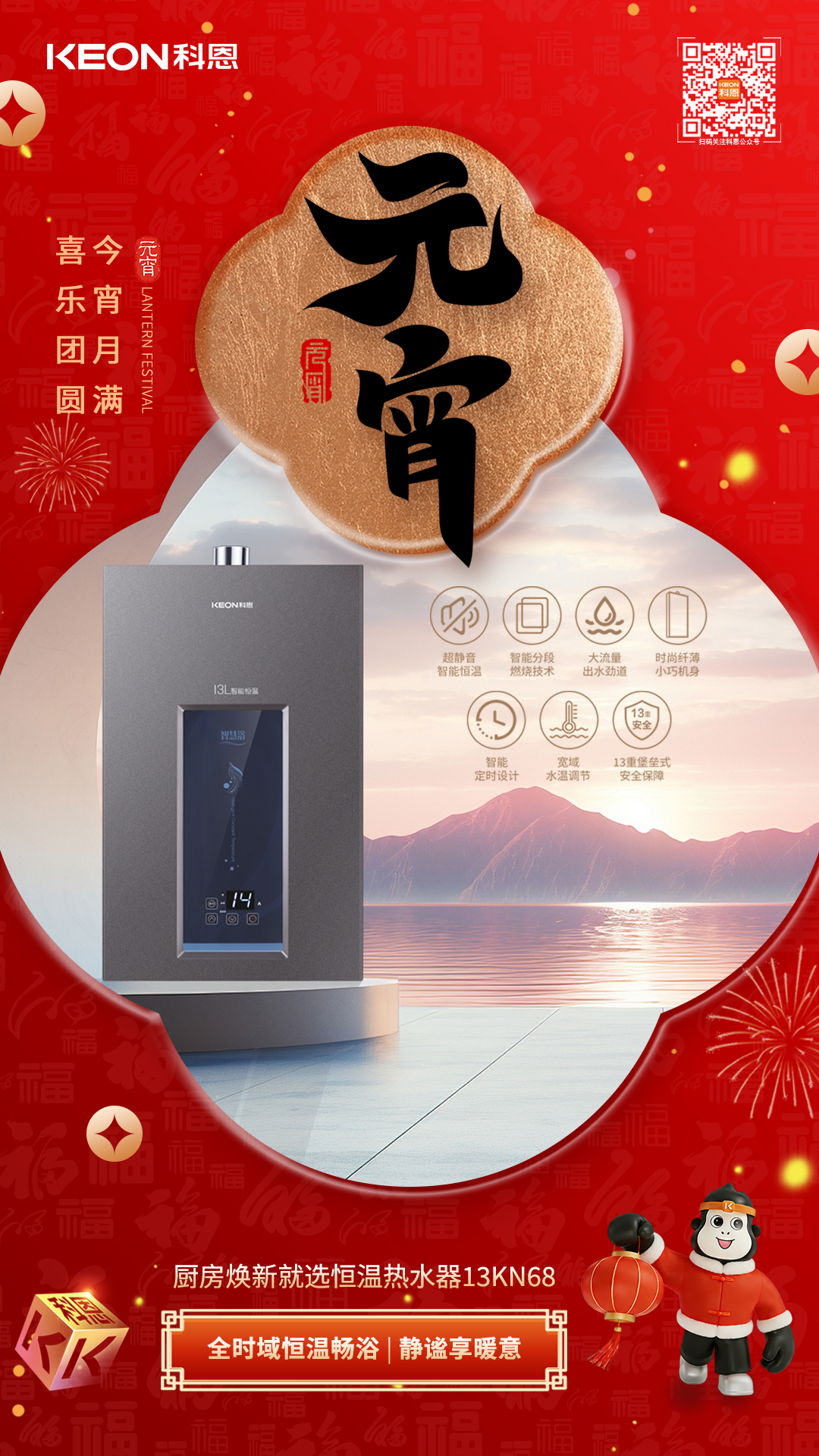 元宵餐后洗漱,怎能少了恒溫?zé)崴靠贫?/span>13KN68以13L大容量滿足全家需求,寬域調(diào)溫,無論是洗手潔面還是舒適沐浴,都能精準(zhǔn)控溫。智能分段燃燒技術(shù)搭配無氧銅水箱,熱效率高達(dá)89%,節(jié)能又高效。