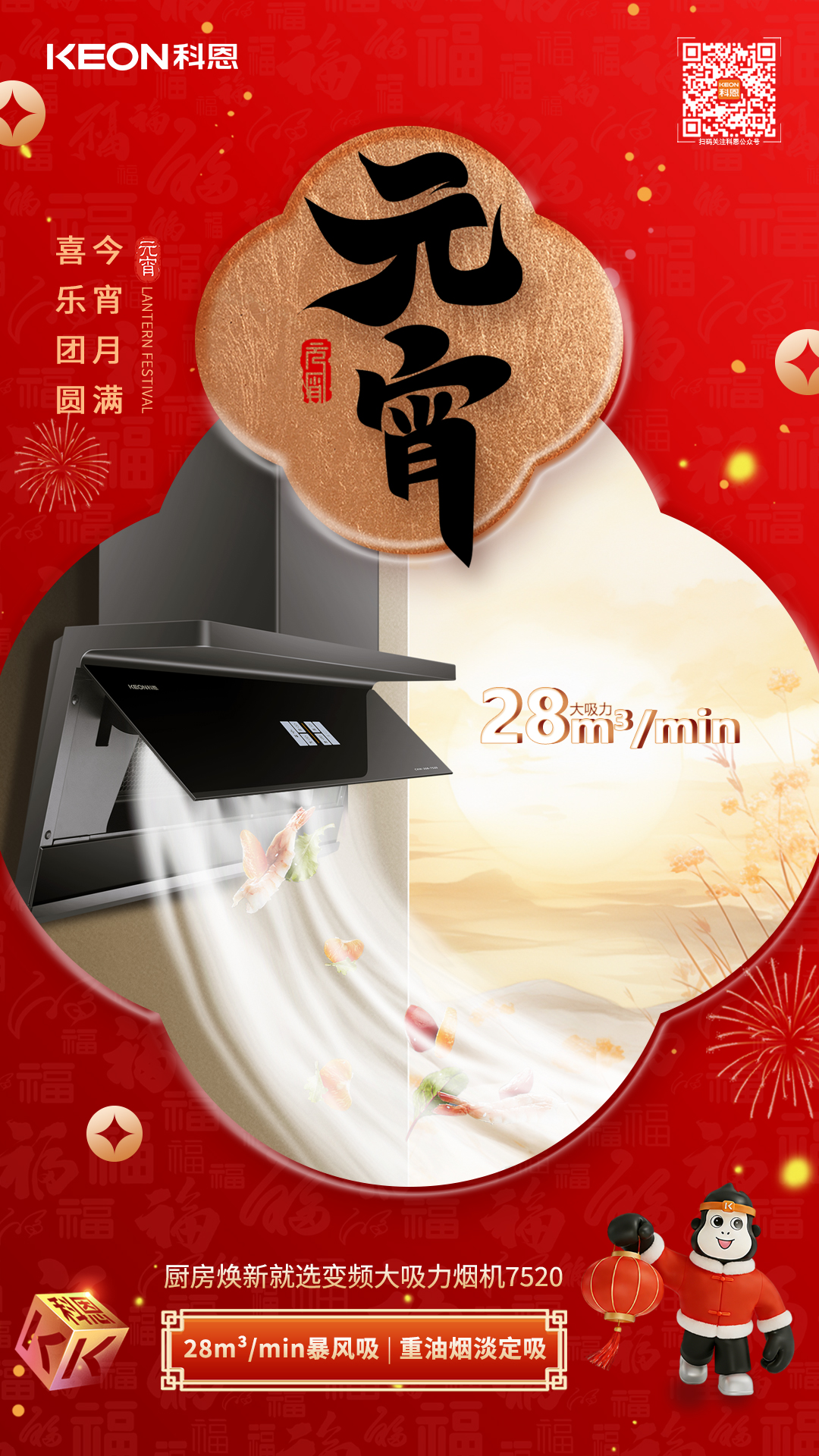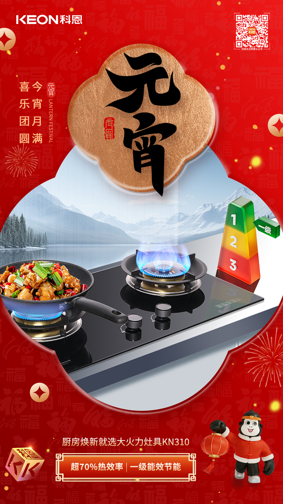 正月十五元宵至,花燈映月慶團(tuán)圓。廚房作為年味聚集地,此刻正上演著煎炒烹炸的熱鬧景象,湯圓的甜香、菜肴的鮮香交織成幸福的味道。但油煙彌漫、火候難控等煩惱,往往沖淡烹飪愉悅。科恩廚電以科技賦能,讓無煙健康與美味團(tuán)圓兼得,讓每個家庭都能自由呼吸間,暢享元宵盛宴。
