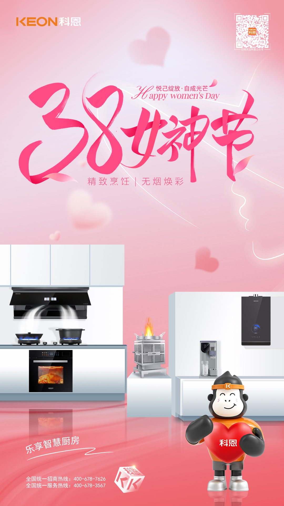從凈煙護航到火候隨心,從恒溫守護到安全無憂,科恩以科技為翼,賦能女性品質生活。不定義她的角色,只守護她的熱愛,不辜負她的付出,只給予貼心呵護,這個婦女節,讓科恩與你一起,讓廚房成為從容主場,讓生活滿是溫柔光芒!愿每一位女性,都能在煙火氣中,活成自己喜歡的模樣,自在如風,優雅綻放。
