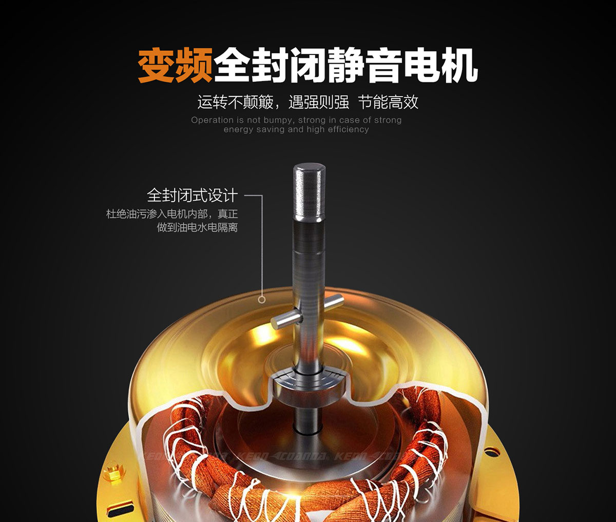 - 全封閉雙滾珠靜音電機,高速運轉不顛簸,高效耐用,防銹耐污。