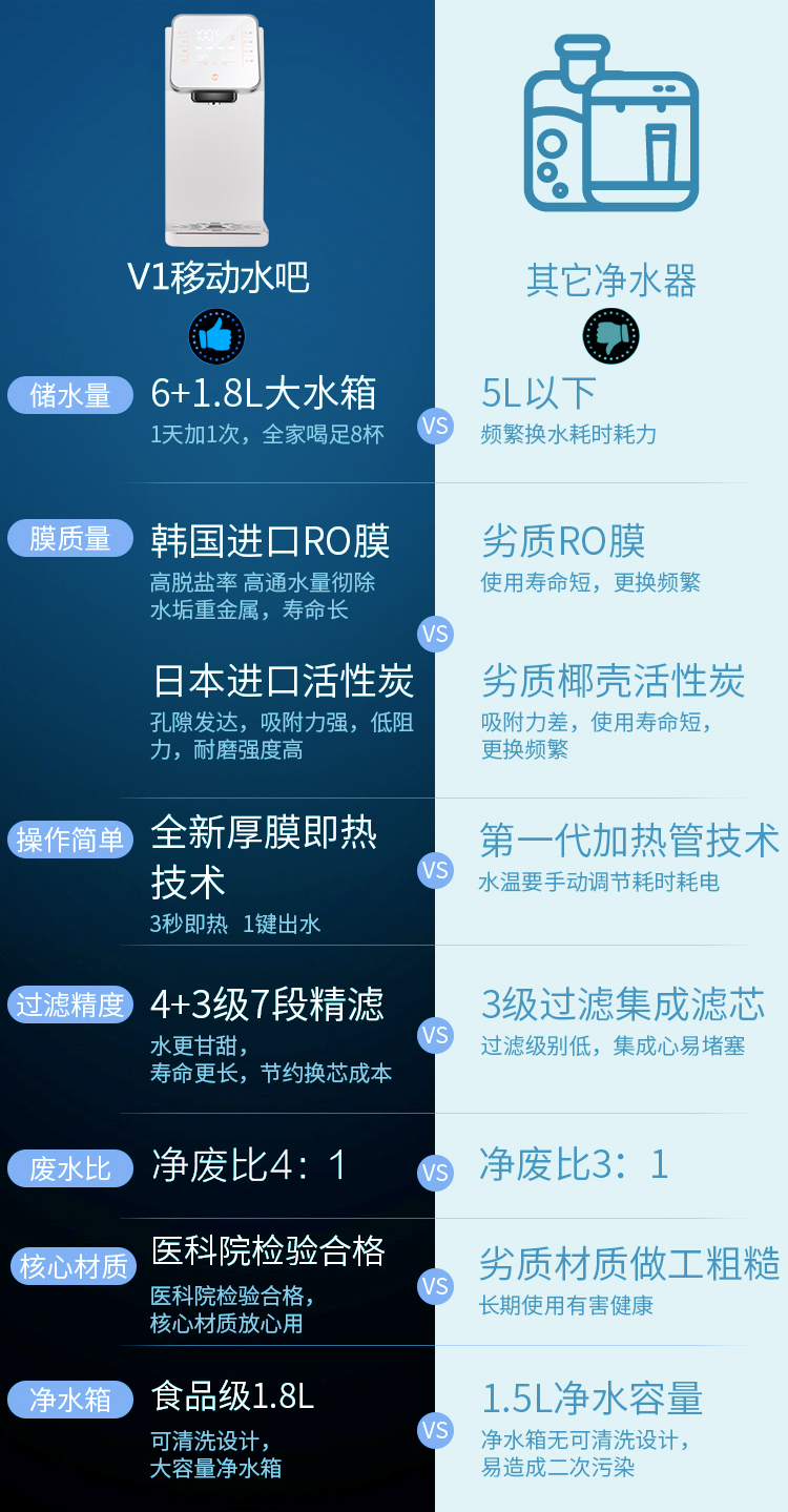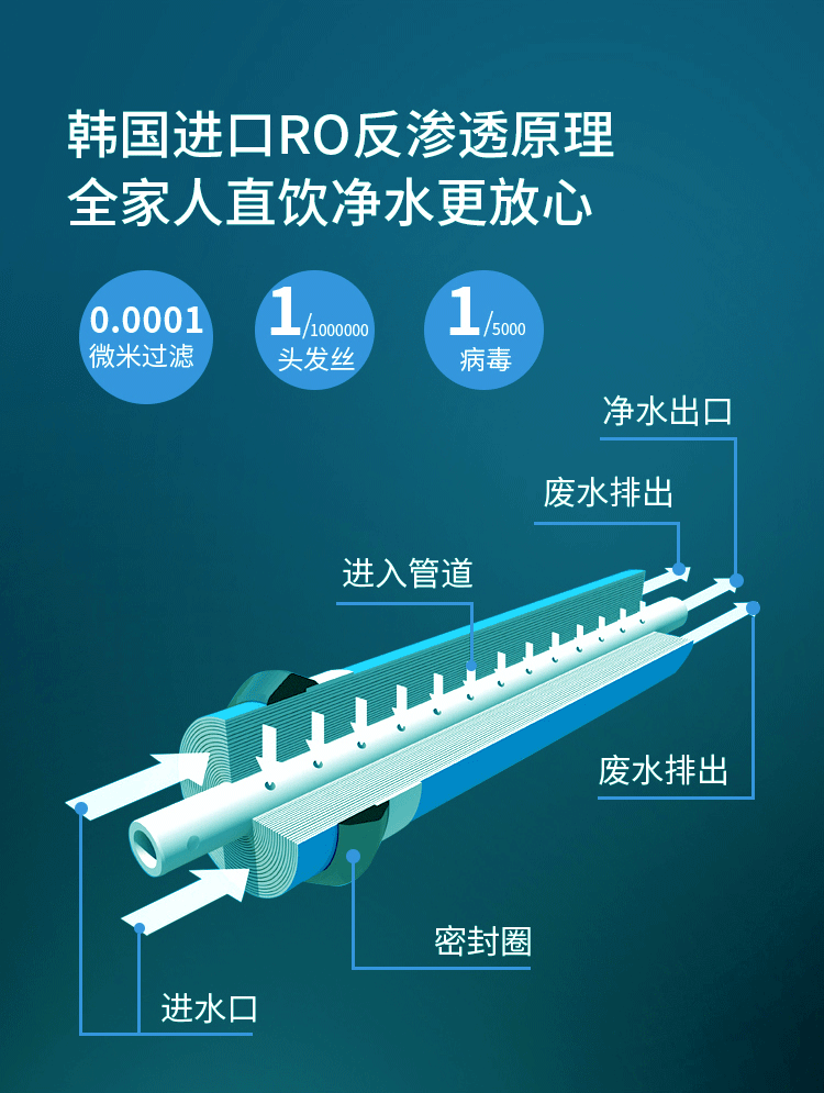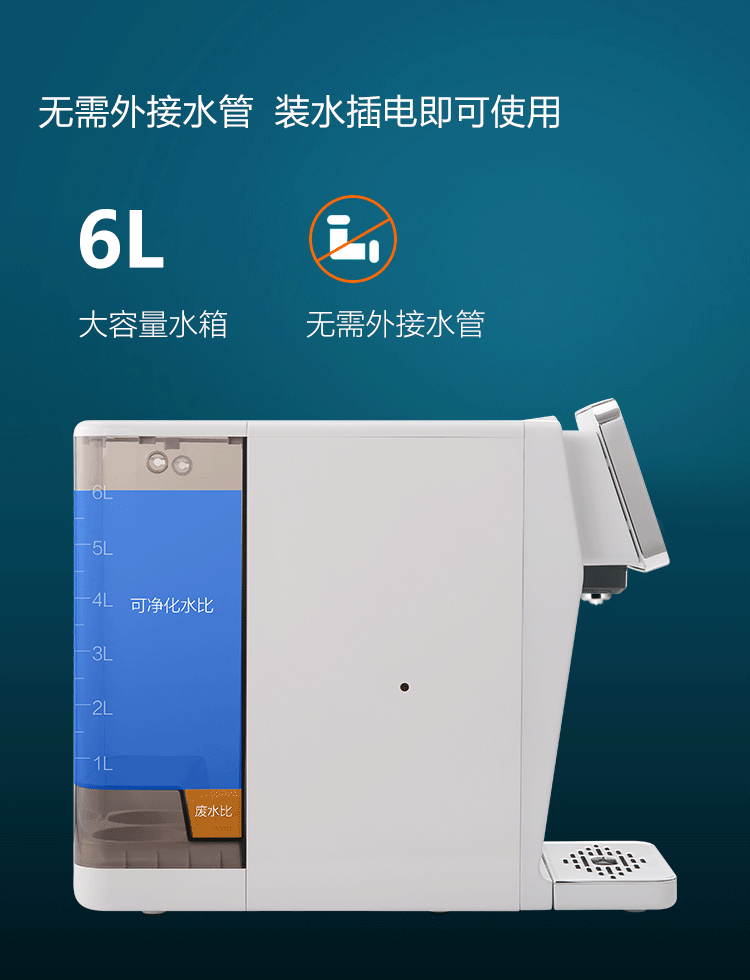 - TDS實時檢測,開機第一時間快速顯示原水值和凈水值,用水更放心。