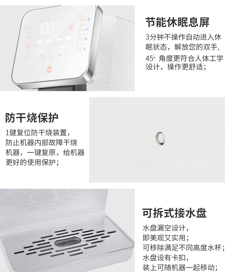 - 雙重防干燒、防漏水,過熱自動停止運行,缺水自動顯示。