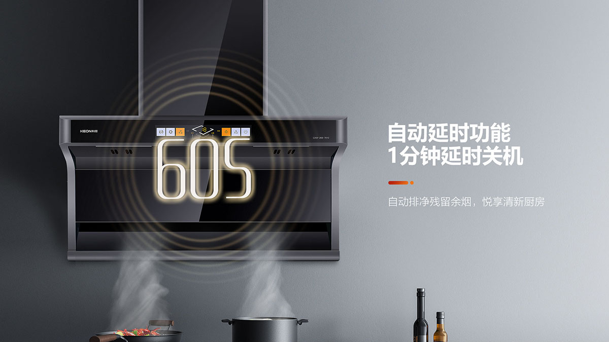 - 自動延時功能,1分鐘延時關機,自動排凈殘留余煙,悅享清新廚房
