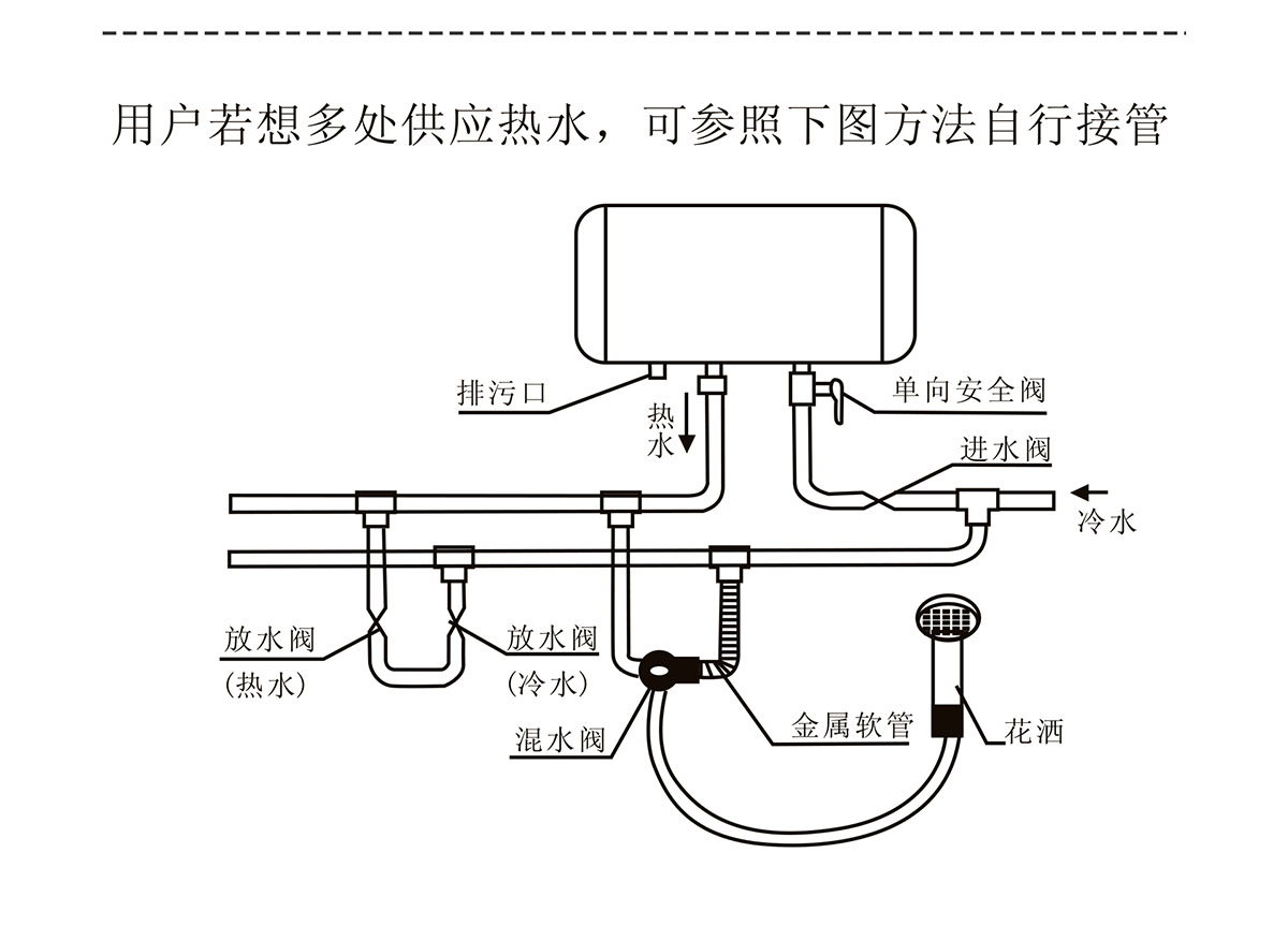 - 適應水壓范圍廣,熱水容量大,可同時供給多個用水點用水