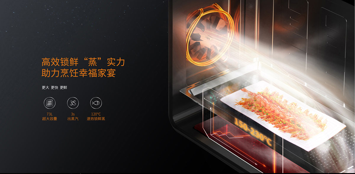 - 73L大容量、8大模式、4大輔助功能,蒸烤炸燉四位一體