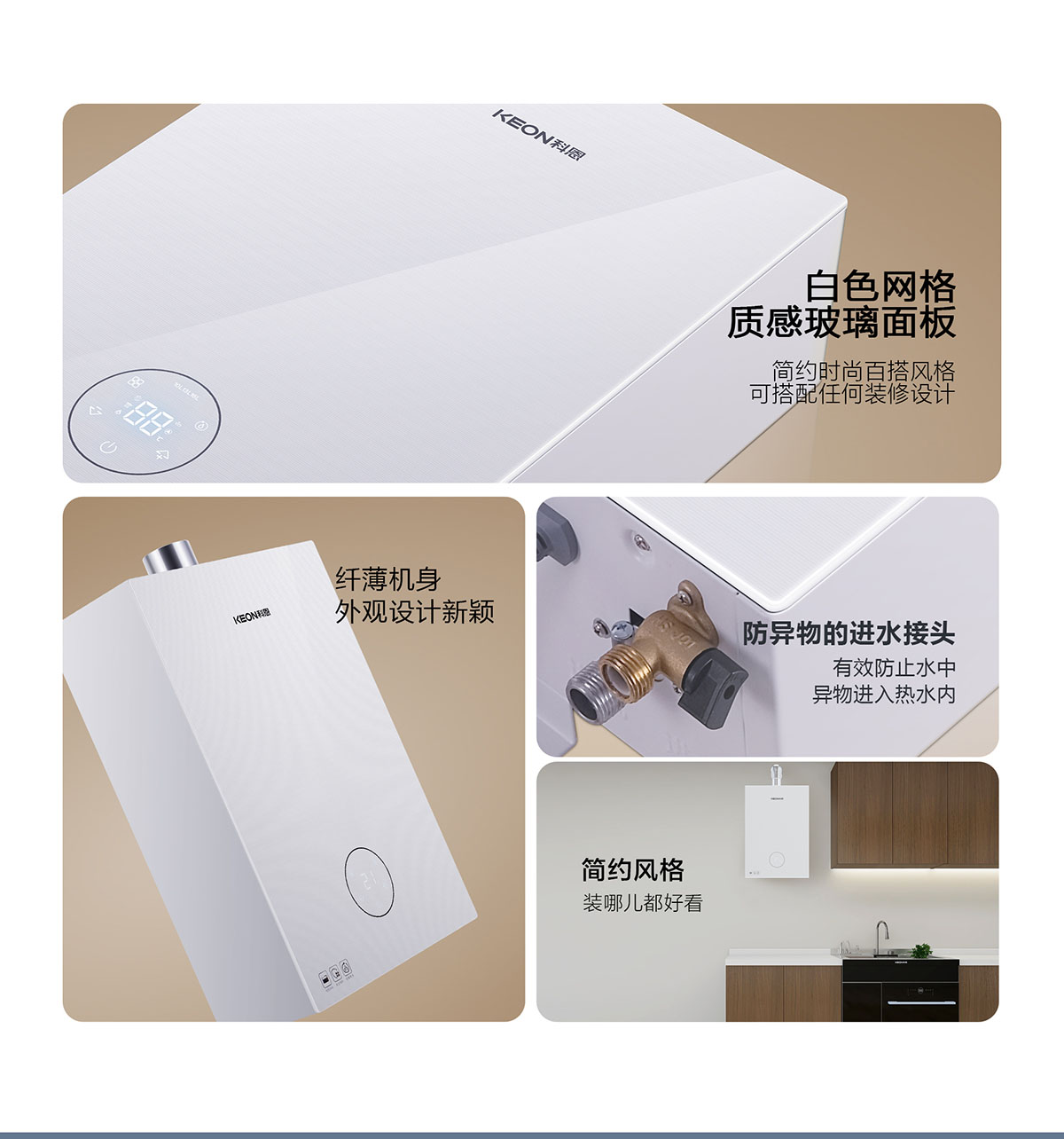- ⻛機預清掃和后清掃功能,避免點⽕時出現爆燃及降低停⽔溫升