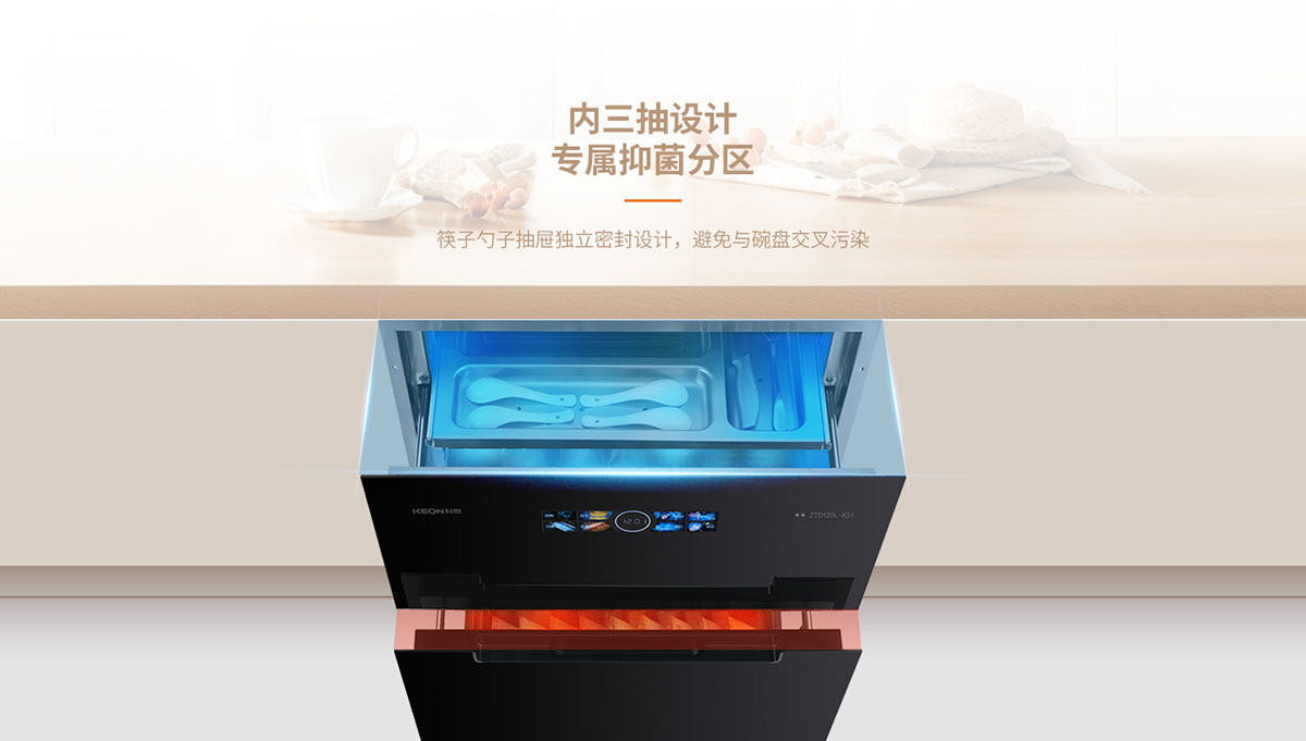 - 內(nèi)三抽專(zhuān)屬抑菌隔層,避免餐具交叉污染