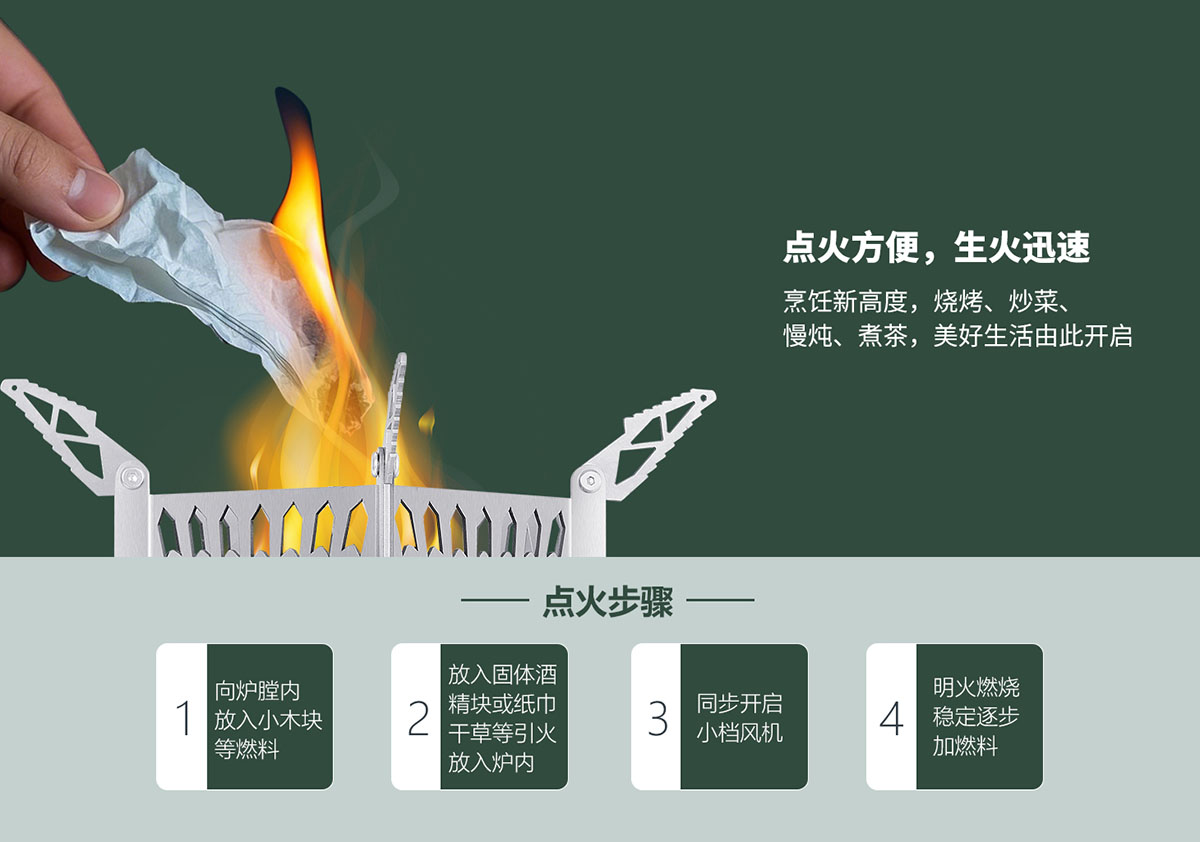 - 科學(xué)結(jié)構(gòu)設(shè)計,點火方便,生火迅速