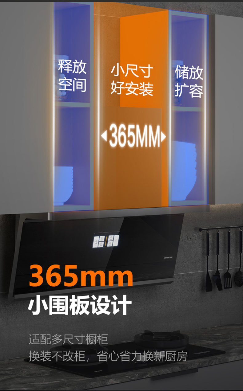 - 365mm小圍板設計,適配多尺寸櫥柜,換裝不改柜