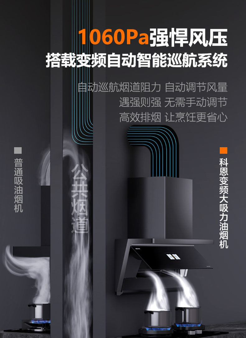 - 1060Pa強風壓,高峰期烹飪排煙暢行無阻