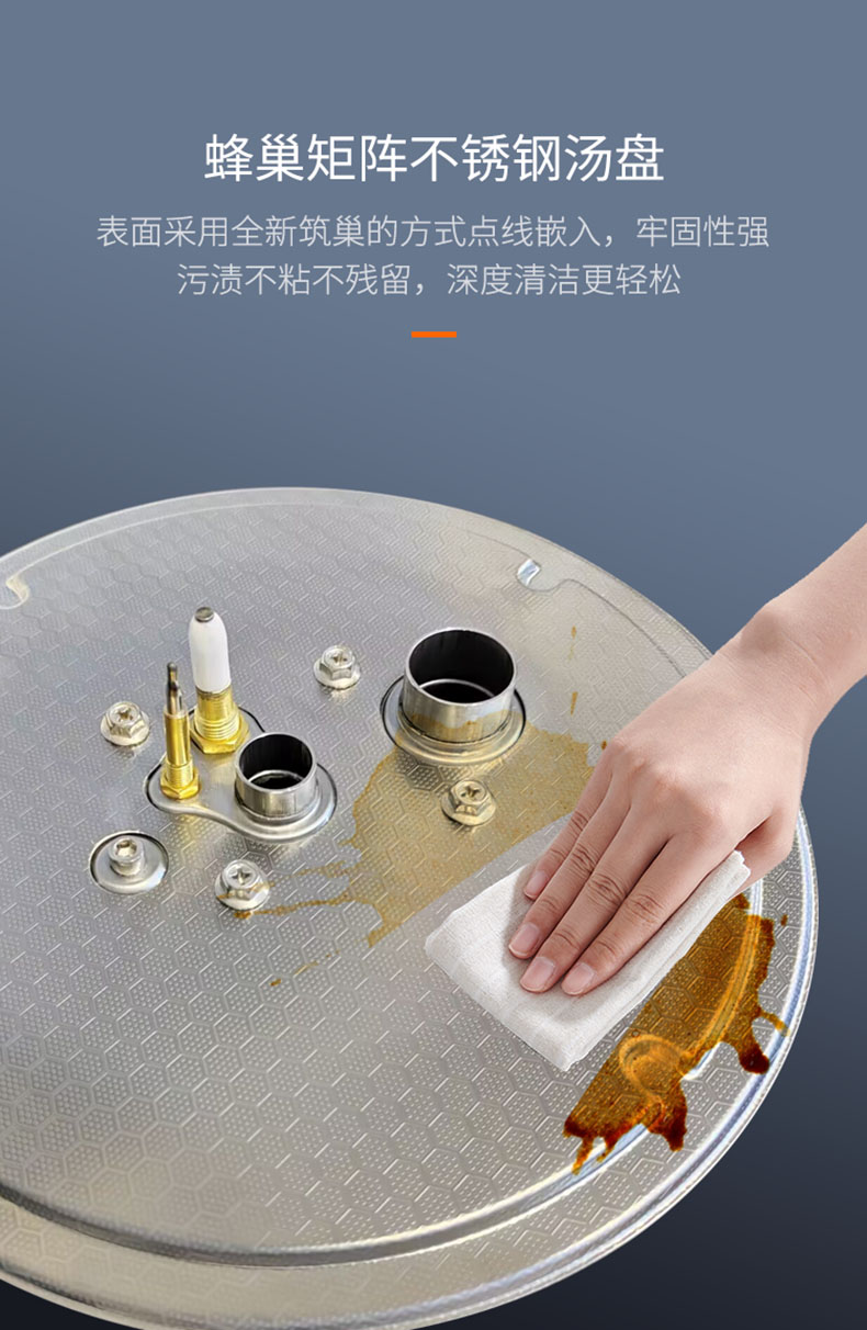 - 蜂巢矩陣不銹鋼湯盤(pán),牢固易潔,打理更輕松