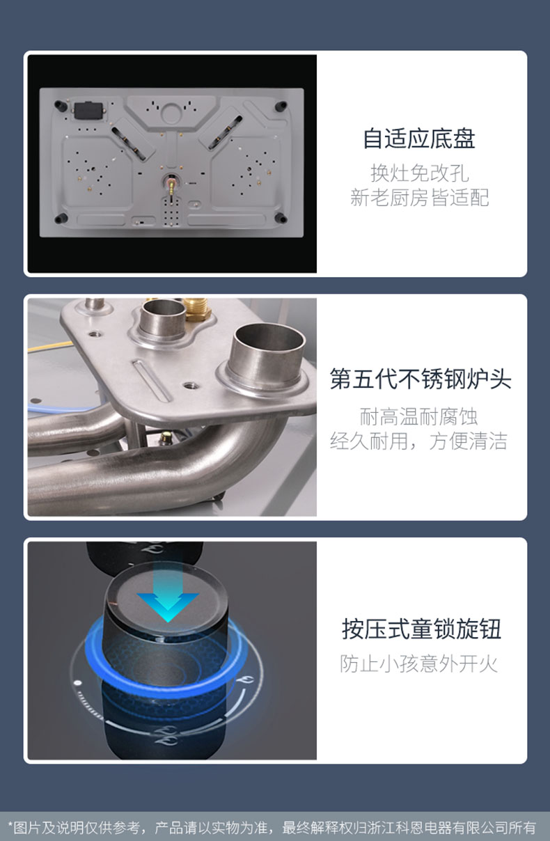 - 自適應(yīng)底盤(pán),換灶免改孔,新老廚房皆適配